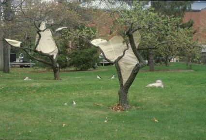 Curved space-time, 2002, Newspaper & trees installation, State College, PA